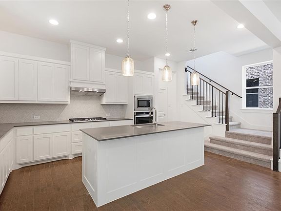Luxurious NEWAshton Woods homejust11 miles fromLegacy West, minutes from US-75 andwithin walking distance to shopping and dining at the Shops at Watters Creek!This 2-story home has great curb appeal with a brick and stone exterior, wood accents and a cozy covered front porch.Gorgeous hardwood flooring in the foyer carries through to thestudy and open kitchen-family-dining area. The family room white tile fireplace makes the entire space warm and inviting. This floorplan offers both a study/office space for adults as well as a desk off the kitchen perfect for working on kids crafts or homework. 42" cabinets, Maestro Quartz countertops, a sizeable eat-in bar top, walk-in storage pantry under the stairs, brushed nickel fixtures, satin nickel pendant lighting, upgraded faucet, undermount sink and Whirlpool stainless steel gas appliances are just a few of the beautifulkitchen finishes. The spaciousmaster suitefeatures a freestanding tub, his-and-her solid surface countertopvanities, shower with upgraded tile and a glass door,and a walk-in closet. The second floor is complete with three bedrooms, two bathrooms, agame room and media room. Additional features of this home include energy efficient lighting, a gas hot water heater, 2-car garage, LED disc lights, 10' ceilings, sprinkler system, gutters, programmable thermostat, fully sodded yard, dual pane windows and more. Welcome