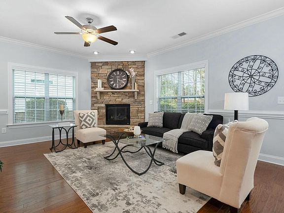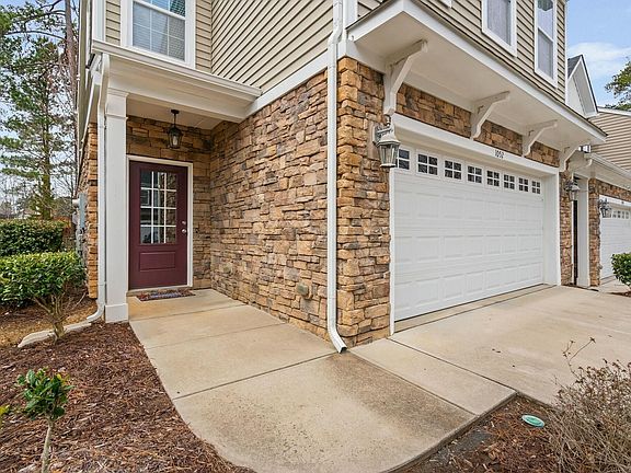 This well-maintained end-unit townhome offers a comfortable and functional living space. The open-concept living and dining area features a stone fireplace, adding warmth and character. The kitchen includes plenty of cabinet space, gas cooktop, large island, granite countertops, and stainless steel appliances. All interior common areas were freshly painted March 2025 and all carpet was replaced and upgraded in 2024. Enjoy the private back patio with peaceful wooded views. The home offers ample storage, spacious closets, and double vanities in both bathrooms. The two-car garage provides extra storage or space for a small workshop. A great opportunity to own a home with a practical layout and desirable features! A quick drive gets you to Bond Park, the YMCA and Apex Community Park.