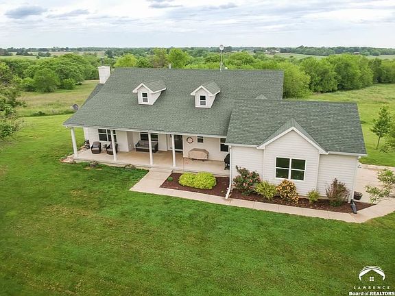 The perfect rural home surrounded by trees and the quiet countryside. Relax on the covered deck looking off into the sunset, or in the pristine custom built home with open floor plan, main-level living, full finished walk-out basement, with space for entertaining both indoors & out! Amazing views of 30+/- gorgeous acres with a pond, 48x68 concrete floor Morton building plumbed for a bathroom, & 30x30 QSI building. Whole house back up generator, storm shelter, and plenty of storage. THIS HOME HAS IT ALL!