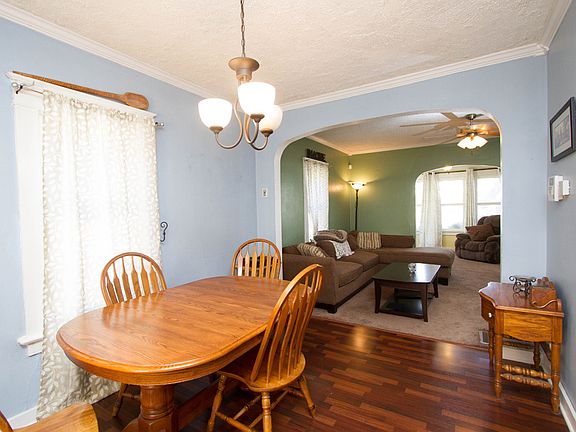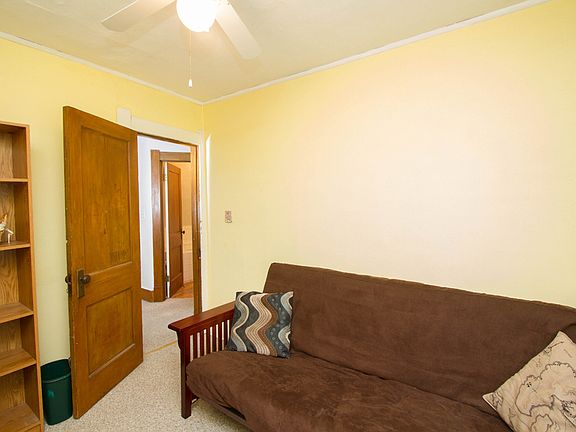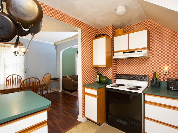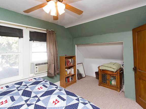 Two, possible 3, bedroom home that's move-in ready! Kitchen opens to dining room & appliances can stay.You'll love the back deck for entertaining & separate fire pit area. 1.5 car garage is very convenient w/ one of the few homes on street w/ a private driveway. 2 full baths, shower in basement. Storage abound! Newer hot water tank & vinyl windows. The room upstairs could be 3rd bedroom w/ armoire