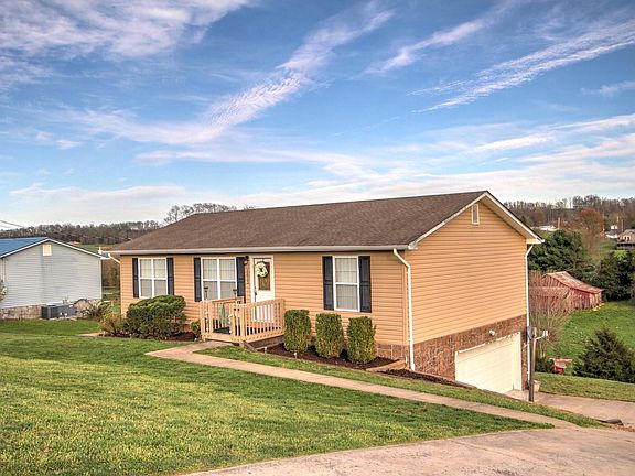 Price Reduced! Darling home all on one level with amazing territorial views in the charming community of Harmony in North Jonesborough! This 3 bedroom/2 bath beauty built in 2008 has a split floor plan design with the master suite on one side and the other 2 bedrooms and bath on the other. The center of the home has a large living room (16.5 feet by 14 feet) that is open to the eat-in-kitchen (13.5 feet by 14 feet). There is a patio with stunning views off of the kitchen and there is a nice utility/laundry room. The basement is huge (1232 square feet) and has high ceilings- it could make amazing additional living space or storage. The drive under garage side of the basement has plenty of room for your 2 vehicles or toys. This home also includes a propane gas heater to keep you extra toasty in the winter! Carpets are being professionally cleaned!