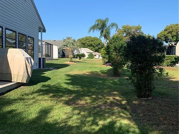 Exceptional beautiful 2 bedroom, 2 full bath home with vaulted ceilings, bonus room converted into 3rd bedroom with closet, along with the extension of the living room into a family room in the enclosed patio with air/heat, adding approximately 400 SF to the existing 1646 SF, with carpet and tile throughout in good condition, sunlight exposure in the eat-in kitchen and the living room, outstanding screened in patio for outdoor furniture and cooking. The landscape is gorgeous with trees and plants around, well-maintained lawn and two car garage attached. This home is without a doubt, one of the few larger homes in Sandpiper with so many amenities! Don't forget it is a 55 and over community, refurbished golf course, newly updated restaurant/bar, with 2 pools and tennis courts, along with security, and the HOA including lawncare and cable. All measurements listed are approximate.