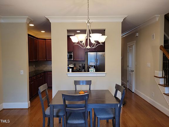 FIRST FLOOR LIVING and MASTER. Step inside to find a spacious Living Room, Hardwood floors, lovely crown molding. The well-equipped & spacious Kitchen has a Smooth Top Stove, Granite countertops, ample cabinets, Walk-in Pantry, Tile backsplash and under cabinet lighting -- ideal for everyday living and entertaining. The First Floor Owners Suite is thoughtfully laid out with a vaulted ceiling and bathroom. The bathroom has a large Tiled Shower with Bench, Dual Sinks, Toilet room and Walk in shower. Washer and dryer are located right outside the owners suite. Also on the first floor is a drop zone and closet as well as a half bathroom. Upstairs - lounge space at the top of the stairs, 2 large bedrooms each with a private sinks. Jack and Jill shower/tub. Each bedroom has a Walk in Closet. Front Bedroom has a Private Balcony. Additional space includes a third-floor walk-up attic, providing ample storage or potential for further customization. Outside, enjoy the privacy of your Covered rear Porch, backyard & fencing. The home also includes a detached Garage and convenient on street parking. Enjoy the HOA benefits of a swimming pool, tennis courts, parks, and exterior maintenance of the home & landscaping. Located just a short walk from the grocery store & restaurants and less than a 10 minute drive to UNC's campus, this townhome offers a blend of lifestyle and location that's hard to beat. Ready to see more? Schedule a showing today!