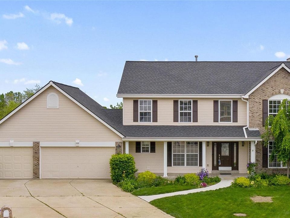 4 bed, 3.5 bath 2 story with nearly 3500 sq. feet of living space located in Peine Ridge subdivision, Wentzville school district. 2 story entry foyer opens to office with built in cabinets, ceramic tile flooring & ceiling fan with light. Dining room has hardwood flooring & updated lighting. Kitchen has 42 cabinets, subway tile back splash, granite counter top & center island. Main floor laundry & half bath located off kitchen. Breakfast room boasts hardwood flooring, bay window with atrium door that leads to spacious deck & level backyard. Living room has hardwood flooring, wood burning fireplace, 5 bay window & ceiling fan with light. Master bedroom has new carpeting, ceiling fan with light & walk in closet. En suite bath with ceramic tile flooring, double vanities & sinks, corner soaking tub & step in shower. Bedrooms 2, 3 & 4 have new carpeting & ceiling fan with light. Partially finished walk out lower level has rec. room, family room, office/sleeping area & full bath.