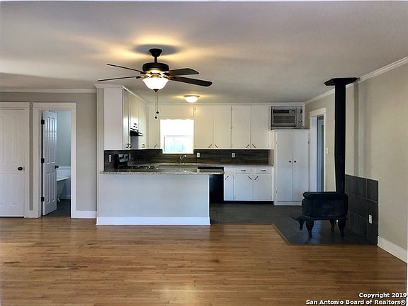 Located just minutes away from Canyon Lake, this 3 bed, 2 bath, home offers a fresh feel with old time charm. Home has been professionally painted inside and out, updated kitchen granite counter tops, with rear deck and privacy fence. Original hardwood floors, a cast iron wood burning stove, and claw foot bathtub. Call it home or use it to get away on the weekends. Schedule your showing today.
