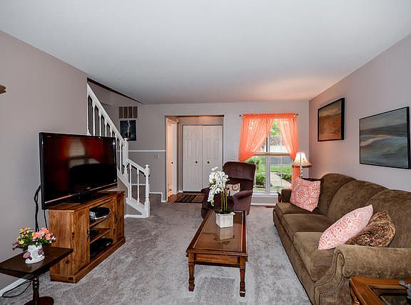 Be prepared to be impressed at one of Bennington On The Lake's most sought after location and models! Upon walking into your own private entrance, the open floor plan & new carpet beckons you home. Large windows let tons of light into the spacious family room. A gas fireplace is shared between the Living and Dining room. Professionally updated kitchen has granite countertops & backsplash, all stainless steel appliances, and Cherry Cabinets. Enjoy your Pond View on your very own patio with sliding glass door with built-in blinds. Main Level Laundry Room with washer/dryer & powder room complete the first floor. Upstairs the spacious master bedroom has two closets, master en suite with skylight, dual sinks & soaker tub. Two more bedrooms plus a second full bath round out this floor. New carpet throughout the house. Hardwood Floors under the first floor carpet. New furnace in 2013. Don't wait this house is priced to sell! Minutes from shopping, restaurants & highways.