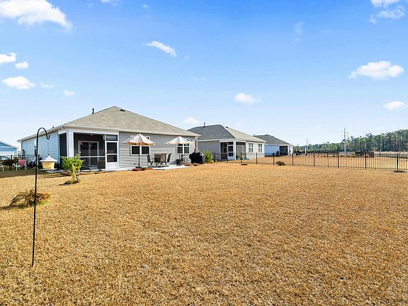 Discover comfort, convenience, and charm in this stunning 4-bedroom, 2-bathroom home located in the sought-after Ridgefield Community. From the beautifully landscaped front yard to the modern, smart-home features, every detail has been thoughtfully designed.  Enjoy the convenience of smart technology, including a complete home security system, video doorbell, and Alexa-enabled features that allow you to adjust the thermostat, lock doors, or open the garage remotely. The home also boasts upgraded lighting throughout, with remote-controlled ceiling fans featuring LED lighting in every bedroom and the living room.  Step inside to luxury vinyl plank flooring, a breathtaking pond view, and a tranquil master suite with a walk-in shower, double vanities, and scenic views. The kitchen is a chef’s delight with granite countertops, stainless steel appliances, including LG French-door refrigerator, a 36-inch breakfast bar, and a walk-in pantry.  The private backyard is perfect for entertaining, featuring a screened patio with solar lighting, a fenced yard, specially designed big sealed concrete patio and a BBQ deck. Storage is no issue with multiple closets, a large laundry room (includes Samsung front loader washer and dryer) and a finished garage with attic space.  This energy-efficient home includes a natural gas stove, tankless water heater, and gas heating.  Enjoy community amenities like a pool, walking trails, fishing pond, and playground, all while being minutes from shopping, dining, golf courses, and the beach.  Whether you’re a first-time buyer or searching for your forever home, this one-year-old property is the perfect place to plant roots.