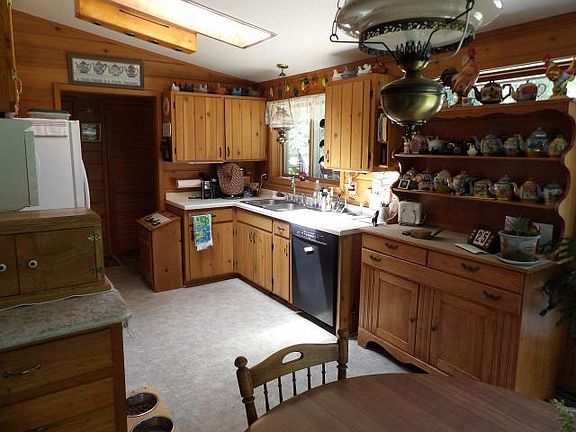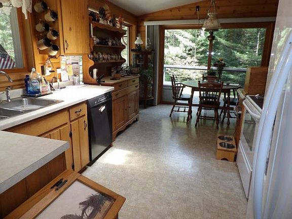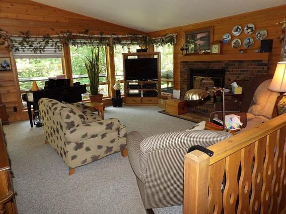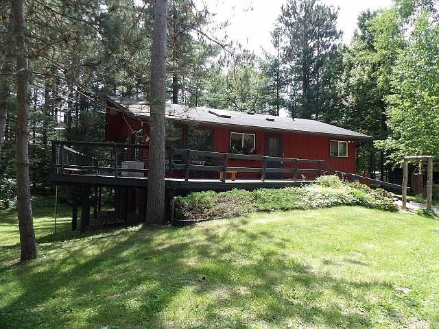 HWY 45 TIMBERSHORE HOME - Location is great, House is solid and you will love the garages! This 3-bedroom Timbershore home has been lovingly cared and it shows. Relax in the living room with the wall of windows viewing the green and wooded back yard while warmed by the fire in the brick fireplace.The view extends to the dining room and kitchen keeping it bright. The house has 2 bedrooms and full bath on the main level and a bedroom and full bath on the lower level. The lower level has large patio doors leading to the level back yard. The rec room is HUGE for games, pool table and kids. There is a 2-car garage and a large workshop you can use for work or play. It is zoned All Purpose so you can work out of your shop with highway exposure. There are additional sheds including an adorable playhouse. The location is convenient just out of Eagle River for the activities in town but it is surrounded by woods to feel tucked away in the forest. It is a honey of a deal!