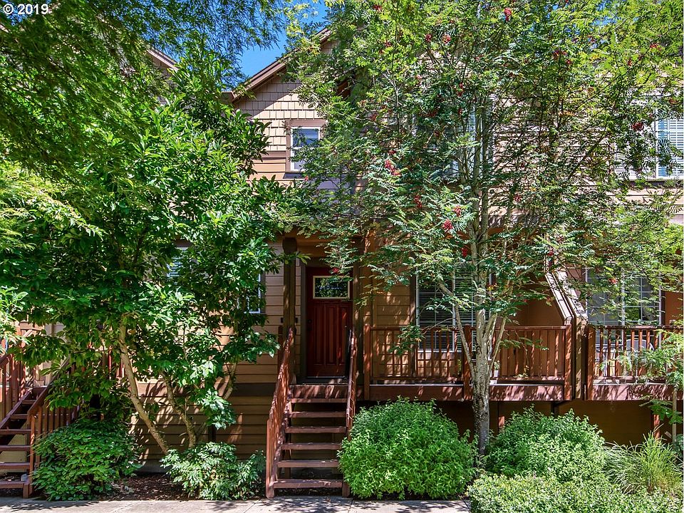 You'll enjoy the comfort and convenience of this charming townhome, boasting: high ceilings, gas fireplace, modern kitchen w/ eat in island, slider to deck for BBQ, 3 bedrooms on the upper level, 2.1 baths, and an oversized 2 car garage. Front porch overlooks the tree-lined courtyard and gives this home an authentic NW feel. Nearby Elmonica MAX station, bus lines, Nike, high-tech, shopping, public parks and trails. No rental cap!