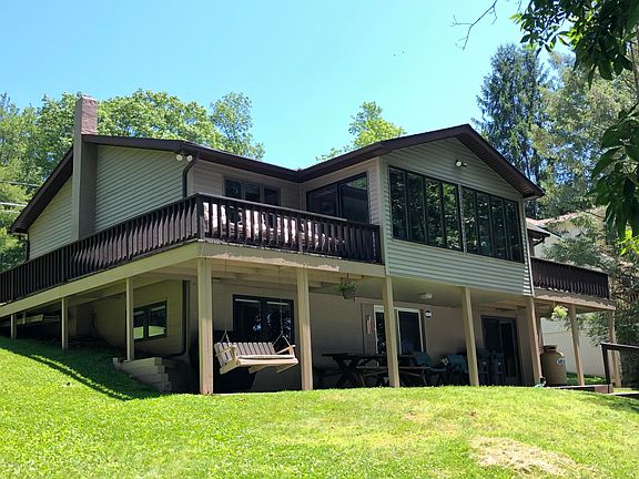 Wallenpaupack Lakefront House on 120' Frontage with Excellent Views and Sunsets. This 4 Bedroom, 3 Bath House is in Perfect Condition and Has Mother/Daughter Possibilites. It features a Fireplace, Vaulted Ceilings, 3 Lakeside Decks, Covered Patio,Home Office, Shed and Much More.