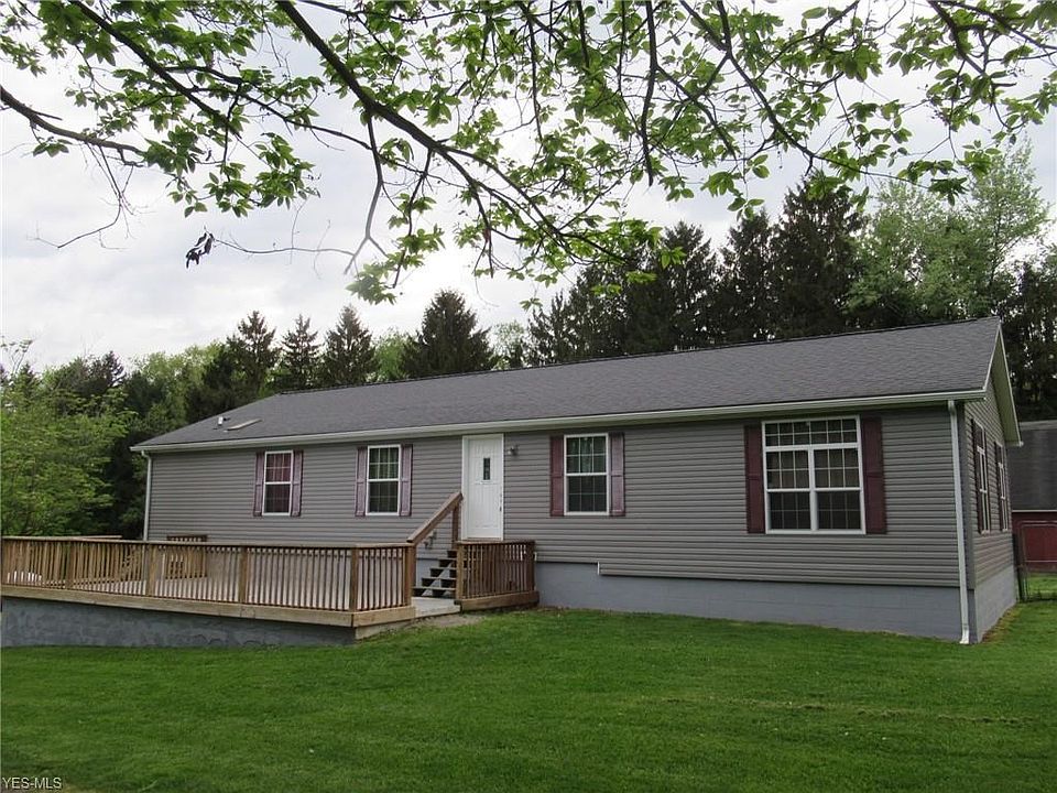 Are you looking for a home that has fenced in pasture for your horse or beautiful 2010 ranch home with 1,920 sq ft is the place you will want to call home? The home offers an open floor plan everyone is seeking with a spacious sunken great room, w/wood burning fireplace vaulted ceilings with wood beams, large kitchen w/an island, dining room and large foyer. You will enjoy the convenience of a utility/1st floor laundry, plus full bath and 3 bedrooms. The master bedroom is quite large and so is the master bath, with garden tub and walk in shower and vanity with double sink. This home also offers a large deck on the front of the home, and a full basement and 1 a car garage. The back yard is also fenced in for your family pets along with the fencing for the pasture. Also several buildings for your chickens if you would like to raise them. The home sits back a long driveway lined with pine trees, very pretty setting and private.