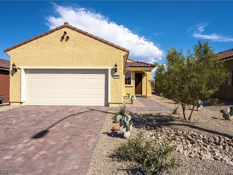 Gorgeous new home in the premier community of Sun City Mesquite! Completed in July of 2022 and set on a premium lot that offers stunning mountain views from both the backyard and living room for you to enjoy all year round. Pulte Del Webb Cottage Overlook model features paver driveway and back patio, high efficiency central a/c and heat, gas appliances, tankless on demand water heater, right height toilets and vanities, granite kitchen countertops, Piedrafina marble in baths, whole house water conditioner and premium upgraded carpet padding. Non smoking and no pet home is absolutely spotless and is perched 8 feet above the houses behind offering world class mountain views. Amenities include community golf, indoor and outdoor pool, spa, pickle ball, tennis. Don't waste time bidding against others on a vacant lot hoping you win, and then waiting months for your home to be completed and then spending more money on your backyard when this brand new home is ready to go!