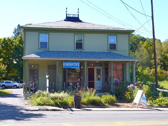 Excellent location for your retail or service business with income from 3BR apartment to offset your expenses. Very nicely landscaped four square building with hipped slate roof, front porch and plenty of glass for showroom visibility. Built around the turn of the century, this building has a lot of character and has been well-cared for. In addition to the store front, there is a large space in the rear of the building that once served as the dining room for the former Max' Restaurant. A prominent West Brattleboro landmark. Attached 20' x 20' garage space is presently leased to the town. Village Center zoning allows for many possible uses.