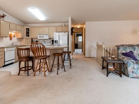 Condo in South Bismarck near Riverwood Golf Course, walking/biking trails, shopping, convenience store & restaurants, plus a few minutes away from a boat ramp & docks. Over sized double garage, 3 bedrooms & 3 bathrooms including the large master bedroom suite with private bathroom and walk-in closet, spacious open floor plan with cathedral ceilings, kitchen with center island & maple cabinets, 2 patio doors (1 in dining room & 1 in the living room) to a large 12x28 maintenance free balcony deck on the east side of the house, the perfect place to enjoy a morning cup of coffee and then an afternoon drink in the shade. The lower level is ground level and has a walkout family room, bedroom, laundry room, 3/4 bathroom and extra closet/storage room.