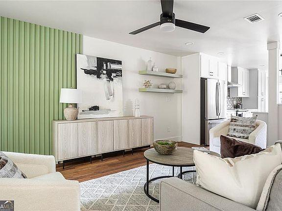 Modern and Comfort! This contemporary three-story home stands out with its striking design and impeccable finishes. Large, strategically placed windows not only enhance the exterior curb appeal but also flood the interior with natural light. Step inside and experience the perfect blend of contemporary style and comfort. As you enter through the front door, you first enter a foyer that leads into the perfectly designed open floorplan that even though open also manages to give separate identity to each space Co living room, dining room and kitchen. The heart of the home is the stunning kitchen, equipped with top-of-the-line stainless steel appliances, expansive quartz countertops offering ample workspace, while the white shaker-style cabinetry provides plenty of storage (along with a pantry), keeping your kitchen organized and clutter-free. The subway tile backsplash adds a hint of rustic charm, while the contemporary light fixtures provide a modern flair. Adding more space in the kitchen is large island with enough seating for four. Adjacent to the kitchen is the dining area flanked by windows and the perfect effortless connection to the kitchen space and living room space ensuring the cook is never left lonely and is always in the mix while cooking The living room is an art piece of its own; this room is anchored by a statement green accent wall with vertical paneling, adding a touch of texture and color that beautifully contrasts with the neutral tones throughout the space. While the large windows and glass door allow natural light to flood the room, the built-in cabinetry and floating shelves offer stylish storage and display options, perfect for showcasing your favorite decor pieces. The attention to detail and thoughtful design make this living room a highlight of the home. Two additional floors offer private re-treat to 4 bedrooms including a spacious primary suite with sitting room and en-suite bathroom. The en-suite bathroom is a spa-like haven, boasting a large glass-enclosed shower, a freestanding soaking tub offering the perfect spot for a soothing bath. The dual vanity provides storage space, while the large mirrors reflect light and space, enhancing the room's airy feel. Also included in this ensuite is a bidet enclosed for privacy and a large walk in closet. The exterior backyard provides private enjoyment as its completely fenced and the location offers you in-town listing at its finest with close proximity to all major highways, downtown Atlanta, Mercedez Benz stadium, Hartsfield Jackson airport, Spelman, Morehouse, Georgia State University and more.
