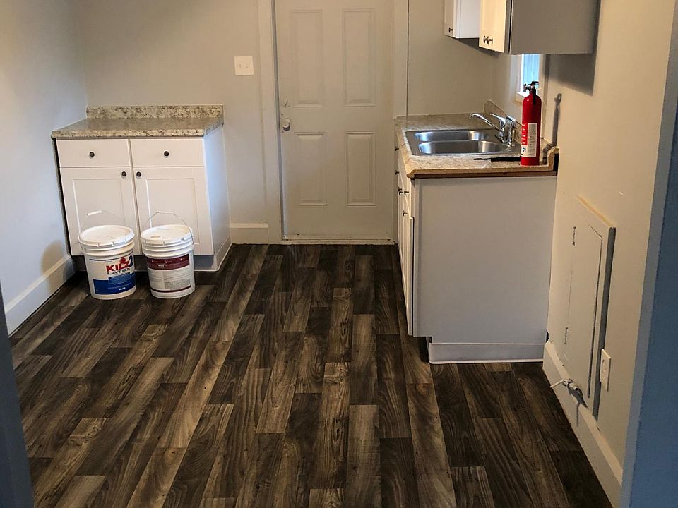 Fully remodeled unit. Updates include kitchen floor, kitchen counters, kitchen cabinets, new refrigerator (arriving soon), new stove (arriving soon), carpeting in bedroom and living room, bathroom vanity, toilet, ceiling fan in kitchen and fresh paint. Located above a bar but noise levels are minimal. No pets. No smoking. No onsite laundry. Off street parking in bar's parking lot. Rent includes all utilities minus cable/internet. Unit has 1 bedroom, living room, bathroom and kitchen. Bedroom is spacious but unit as a whole is more suited for a single individual or couple. Lease can be month to month. No application needed. All utilities paid except cable/internet