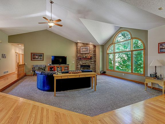 Stunning wooded Oak Lake setting. This magnificent 8.625 acre lot provides great privacy. This is a custom built home that features a great open floor concept with 2368 FSF on main level. 2 fireplaces (1 in the master), GEO thermal and in-floor heat in lower level. Destination room outside. Property also has a pole barn (40x60) and 20x40 is finished, heated and insulated with in-floor heat.