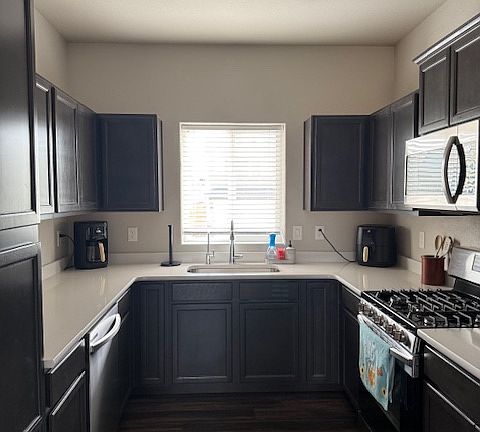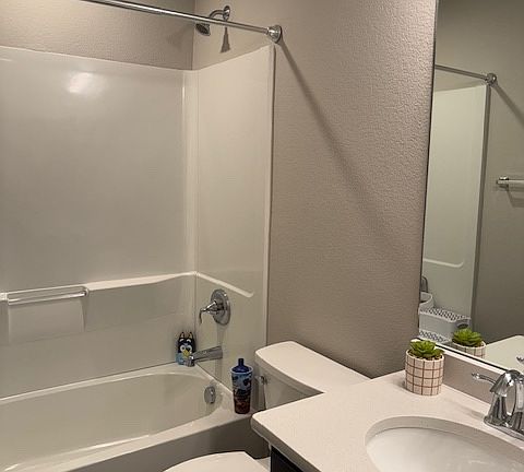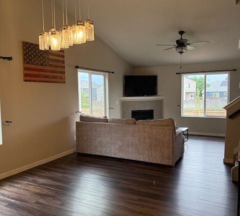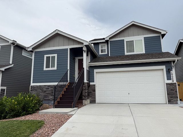 Like new tri-level home features 3 bedrooms, 3.5 bathrooms, a walk-out bonus/flex room to a fully fenced, nicely landscaped back yard, and a spacious 2-car garage. Featuring two upper level bedrooms to include a master suite with walk-in closet and private bath. Large private bedroom located on the lower level with its own full bath. The stylish kitchen has stainless steel appliances, a gas range, LVP flooring, large pantry, and a dedicated dining area. Upstairs also includes a spacious laundry room. High ceilings and neutral tones create a light, open feel throughout. Central A/C, automatic sprinklers, covered composite entry deck, extended concrete backyard patio and more. Located near parks, schools, shops, and dining with easy access to Peterson AFB via Marksheffel this home offers comfort, convenience, and space for all. Tenants pay all utilities.