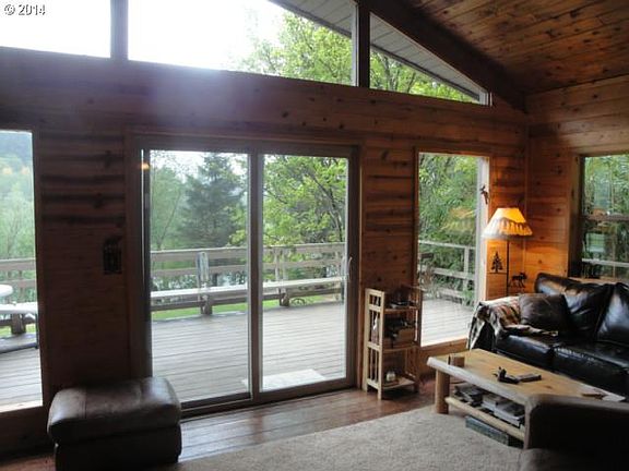 Perfect Getaway! Tucked way at the end of the road almost in the Coust Range foothills, rustic but modern cabin has built-in bunkbeds, a laundry room, tile backsplash in kitchen, wood floors & a slider to an expansive deck overlooking the Wilson River, Valley & Mountains beyond. Protected from the worst weather, southern exposure, deeded access to one of the best fishing holes on the Wilson River!