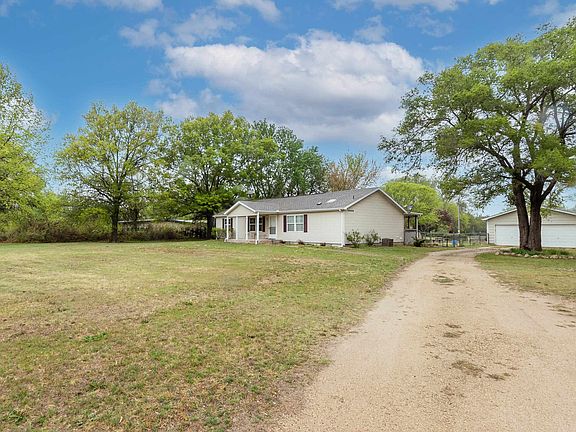 Country living on 2.25 tree lined acres right off the blacktop! Horses and/or cows are allowed! The covered front porch is a great place to hang out and enjoy the serenity. Walking into the home you'll find a large living room with a vaulted ceiling. The kitchen has skylights to let in wonderful diffused natural light and loads of counterspace for all your cooking and baking needs. The appliances stay! There is a breakfast nook right in front of the sliding glass doors that features a built in bar height counter top. The current owners use it for an extra pantry/food prep area, but you could definitely use it for an eating space in the kitchen. Don't miss the laundry/mud room with it's own entry door. The home features a split bedroom plan. The master bedroom features a walk in closet and vaulted ceilings, and the ensuite bathroom has an additional closet that could be used for linens and storage, or more clothes! Going out the back of the home you will surely enjoy the covered deck and fenced in portion of the yard. Tired of paying for eggs? The chicken coop stays! There is a 24X30 detached shop with a workbench! It is wired for 220 AND it has a partial basement that is great for storage, a storm shelter, or maybe a clubhouse! Lots of fun is sure to be had at the fire pit, and the raised beds are just waiting for you plant your veggies or flowers. Walking toward the back of the property you will appreciate the beautiful trees that line the property and create a highly coveted wind block! Don't miss your chance to own a piece of prairie paradise- schedule your showing today!