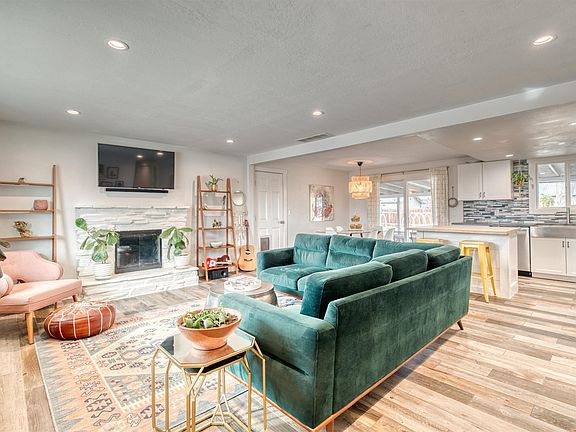 This beautiful Boise rambler is move in ready! Imagine cooking in the stylish kitchen w/ butcher block island & concrete counters, while remaining part of the action in the open concept space. Cozy up to fireplace the with a warm cup & good book. Inside offers updated bathrooms, lighting, freshly painted interior & engineered hardwood flooring & more. Head outback to find a spacious covered patio, ideal for entertaining or simply unwinding on long summer nights. Enjoy raised garden beds, a fire pit, chicken coup & a back fence adorned with plants that are not just for show; they serve as pollinators for the bees from the hives at the nearby Boise Outdoor Garden School in Comba Park. Comba park also has a splash pad & community garden as well. Garage has a finished room for an office, storage, working, etc. No HOA and RV parking! Sellers have loved that the Village of Meridian is only 5 mins away for shopping, summer shows, dinner, etc! A charmer to come see for yourself!