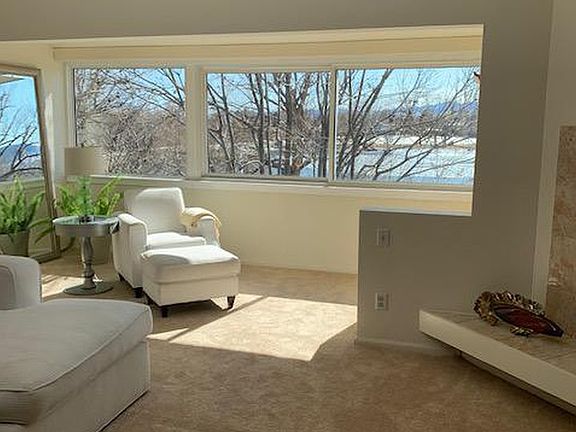PUBLIC REMARKS: Fantastic upper end unit showcasing lake and mountain views. Incredible wall of windows in the sunroom area to enjoy the beautiful sunsets. Open floor plan offers high ceilings, living room with built-ins, and fireplace. Cozy up to the bar height quartz countertops or gather at the dining area. Main floor bedroom with new carpet, walk in closet and updated bath. Large upper bedroom with city, lake and mountain views. Stars twinkle in the skylight. New oversized shower, counters, sinks, and fixtures. Plenty of storage space. Just a few steps up to the front door from the garage. Well cared for by long time owners.