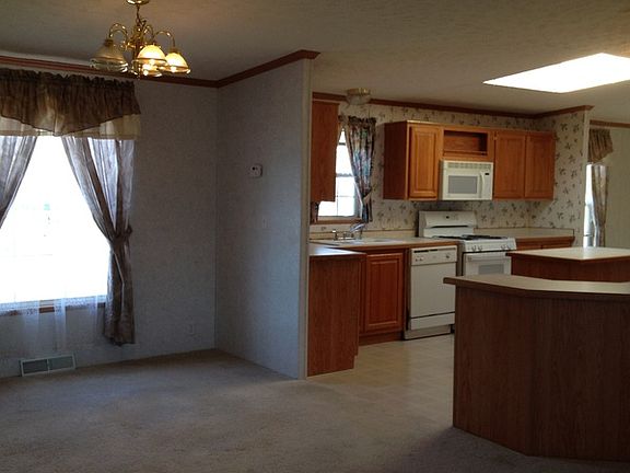 Can be seen at above address but MUST BE MOVED TO DIFFERENT LOCATION AT BUYERS EXPENSE! Gently used 2002 manufactured home with MANY UPGRADES! 1813 sq ft, all appliances, including washer and dryer. Large kitchen with center island and 4'x4' sky light. 3 bedrooms, 2 FULL baths, eat in kitchen PLUS dining room, living room, and family room with fireplace, heatilator insert and gas logs.