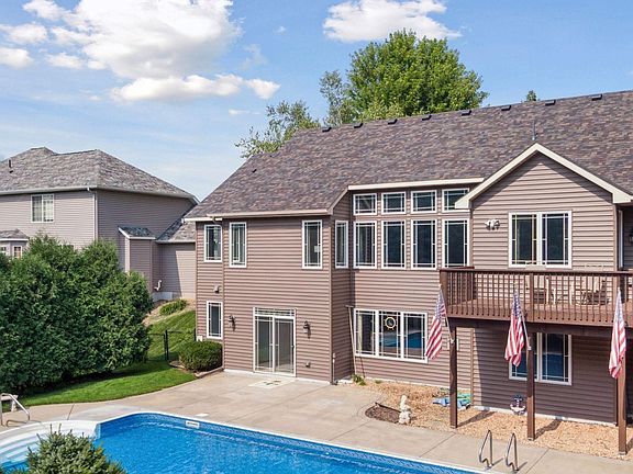 Don't miss your chance at exceptional one-level living in this 5BR/3BA Woodbury home w/ a 20x40 in-ground heated pool! Home resides on a beautifully treed lot in the Eagle Valley community that backs up to several acres of city-owned woods. Updated kitchen features new quartz countertops, new fridge/dishwasher, double wall oven, lg center island w/ seating, & ample cabinetry. Enjoy both a formal dining room and an eat-in kitchen that opens to home's deck overlooking the pool and patio space below. The grand living room offers 12' ceilings w/ crown moulding and a 2-sided gas fireplace w/ stacked stone surround. Updated modern lighting fixtures throughout. Spacious main level primary bedroom suite features an updated private full BA and walk-in closet. Convenient main level laundry. Finished lower level walkout w/ wet bar is perfect for entertaining and hosting pool guests. Roof and siding only 2yo. Pool liner, heater, & cover all less than 3yo. Terrific neighborhood surrounding the public Eagle Valley Golf Course. Highly Respected ISD 833 Schools. Easy access to Woodbury Drive. Satisfy all your outdoor, shopping, and restaurant needs in minutes!