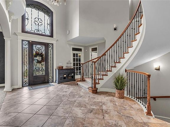 Remarkable Story and a Half Stunner on the golf course in Staley Farms! Many recent updates, including interior and exterior paint. Updated Kitchen with new countertops, backsplash. light fixtures, faucets and more! Enter into the grand 2 story foyer with a well-appointed office to your left and formal dining on your right. Living Room has new cabinetry and fireplace surround and opens to Kitchen and eating area. Covered deck off the Kitchen with fireplace and great views of the course! Primary Suite is gorgeous and located on the main level. Huge Laundry/Craft Room on the main level off the Kitchen. Upstairs has 3 beds and 3 baths, plus a loft with a balcony overlooking the foyer. *Brand New Carpet on Second Floor!* Basement is huge with a bar, another living area, a 5th bedroom or workout room and full bath. This one will take your breath away!