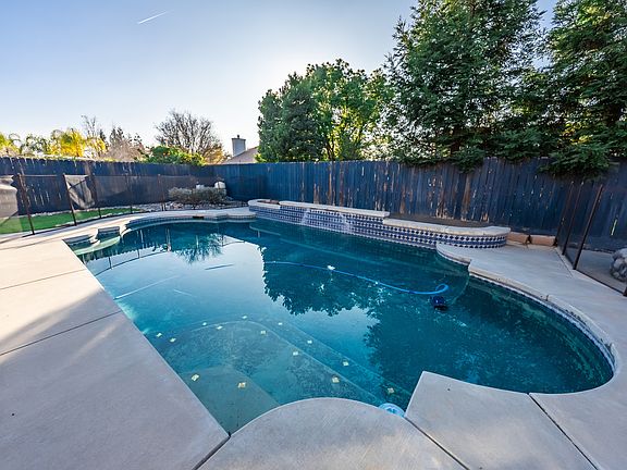 Prime NE Fresno Location, one block west of Clovis North High School. This stunning home features OWNED solar (paid by owner) substantial electric bill savings, a sparkling pool with maintenance included, and 5 bedrooms. Upon entering you're greeted by a lovely foyer, spacious living room with a cozy fireplace. The chefs kitchen boasts granite counter tops with a large island and a perfect view of the back yard. The pool is completely fenced with a beautiful water feature. There's a nice built-in fire pit, perfect for entertaining guests.This home conveniently has a bedroom and full bathroom downstairs. There is newer carpet and lovely luxury vinyl plank flooring throughout the house. Upstairs features the rest of the bedrooms, laundry room and a stunning owners suite. The owners ensuite boasts a soaking tub, shower and a huge walk-in closet that will not disappoint. Landscaping & Pool Maintenance are included in rent. Property isn't pet friendly.