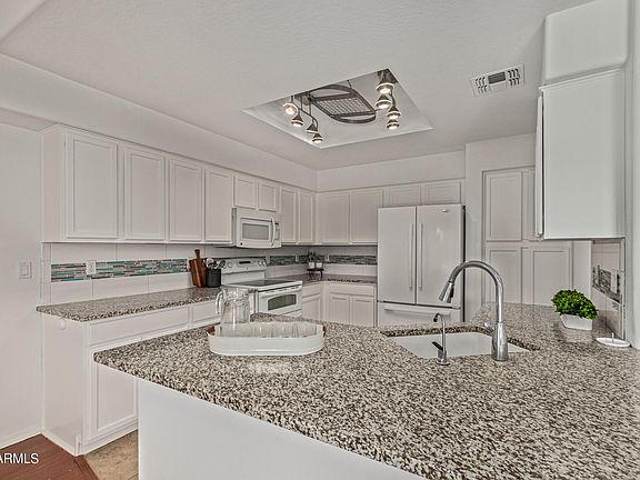 Delightful 2-story gem located in the coveted Sunrise Harbor Shores Community directly across from the community pool! Inside, discover a blend of wood & tile flooring, soaring ceilings, expansive living areas, and a radiant family room. The kitchen boasts pristine white cabinetry, matching appliances, sleek granite countertops, and a convenient breakfast bar. Upstairs, a cozy loft provides an intimate entertainment space. The primary bedroom features vaulted ceilings, an ensuite with dual sinks, and 2 spacious walk-in closets. Tranquil backyard complete with a covered patio and ample room for entertaining. Walking distance to Gateway Crossing center with restaurants, shopping, and entertainment. Minutes from Westgate Entertainment District, sports arenas, and easy access to freeways.