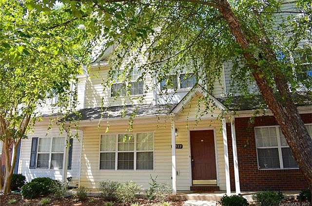 Great 4 Bedrm with a finished BASEMENT! Freshly painted in foyer, den, dining rm, & bedrms up. Hardwood floors on main lvl, new carpet upstairs & newer carpet in basement, newer refrigerator in kitchen, dual HVAC's w/one A/C unit practically new. Basement features spacious 4th bedrm, full bathrm & bonus/family room area perfect for entertaining. French doors leading to patio & a nicely sized storage unit attached. 2 Parking spaces assigned directly out front. Convenient to I-485 & shopping.