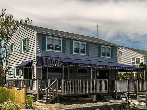 This spacious bayfront home is perfect for the large family with its six bedrooms, one of which is a bunkroom with its own full bath for the kids, plus a master bedroom and bath, four additional bedrooms, a third full bath and two half baths. The first floor includes a large TV room and a great room with the living, dining and kitchen areas all located on the bayside and opening onto a huge deck with an awning and ceiling fan, which spans the full width of the house overlooking the bay. On the waterside is a large fixed dock over the water, plus a floating dock and two boatslips. Entire interior of home just repainted. You'll love the very special location of this home on the water on one of the most secluded and desirable streets in Stone Harbor. The homes in this area typically remain in the same families for decades with very little turnover, but this is your chance to live and enjoy the waterfront lifestyle in a prime location. The property does need a bulkhead replacement, but owner is applying for the permit to replace the bulkhead and will install the new bulkhead and dock repairs at his expense. Completion date is to be determined.