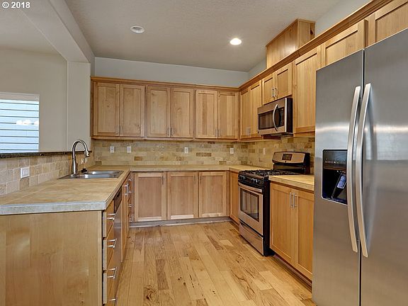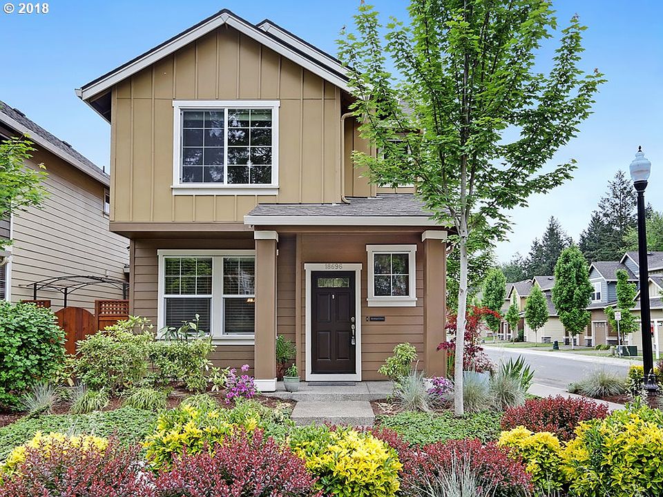 Great Room Floor Plan Light & Bright End Unit! 1,512 Sq.Ft. 3 Bedrooms, 2 1/2 Bathrooms w/2-Car Garage. Hardwood Floors on Main! Kitchen w/ Tile & Slab Granite, Gas & Stainless Steel Appliances. Dining Room w/ Slider to Aggregate Patio. Vaulted Master Suite w/ Double Closets. Washer/Dryer & Refrigerator Included! Central AC. Blocks to Light Rail & Minutes to Streets of Tanasbourne, Nike & Intel!