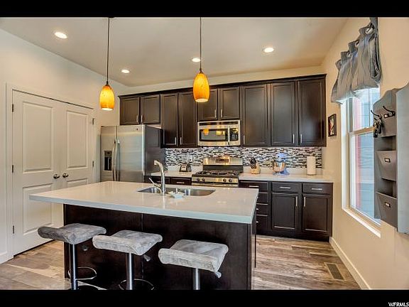 Contact agent Thomas Schriever to set up a showing @ 801-870-1240 Don't miss this great Daybreak townhome. Home is fully finished with many upgrades. Come enjoy the open floor plan that is great for entertaining. Kitchen features Quartz countertops, under cabinet lighting, 42" soft close cabinets, modern backsplash, gas range, and stainless appliances. Lots of natural light, tons of closets and storage, gas log fireplace, 9 ft ceilings, in this energy star 3.0 rated home. Just 1 block to the park and 2 blocks to the Lake, 4 blocks to Eastlake Elementary. Be a part of Daybreak and enjoy all its amenities: Fiber optic Internet, landscaping, insurance, Fitness center, kayaking, trails, pools, parks, etc. Square footage figures are provided as a courtesy estimate, verify all. View the interactive 3D tour and more pictures at www.topviewroad.com MLS #1387515