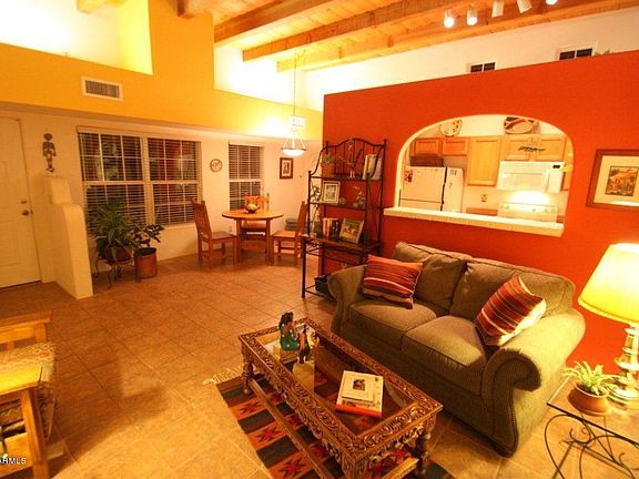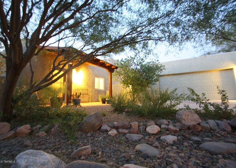 For more information on this property, contact the Listing Agent, Team Coppel at (520) 271-4004 or RicardoCoppel@yahoo.com. THE BEES KNEES IN THE HEART OF CIVANO! Your treasure awaits, tucked away on a quiet side-street with no through traffic. This gleaming T.J. Bednar built one-level home offers privacy and comfort. Well maintained and tastefully decorated; interior features include an open and bright floor-plan, high-beamed ceilings and tile flooring in the main living areas, clearstory windows in the master bedroom, and much more. Enjoy an equally pleasing exterior with a northeast facing custom wrap-around covered porch, mature vegetation, and a completely walled yard. Subtle and tasteful artistic touches accent the private courtyard and oversized, double-detached garage with extra storage.