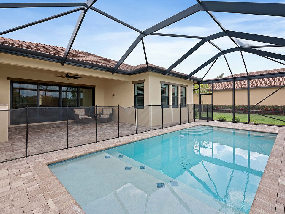 - Pool features: Gunite, In Ground, Screen Enclosure, Private, Equipment Included, Child Gate