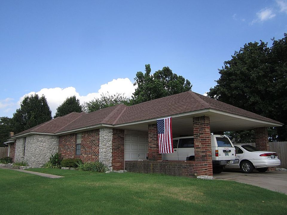 A classic owner developed ranch style brick & rock home spread out over two lots. Only home in the area that has a built-on attached 2 vehicle carport. Only home in the neighborhood where the garage door does not face the street.