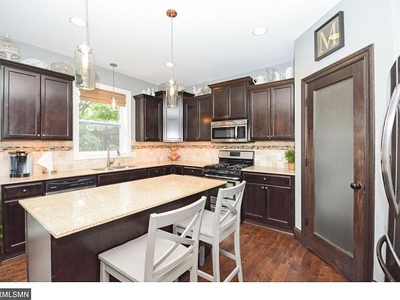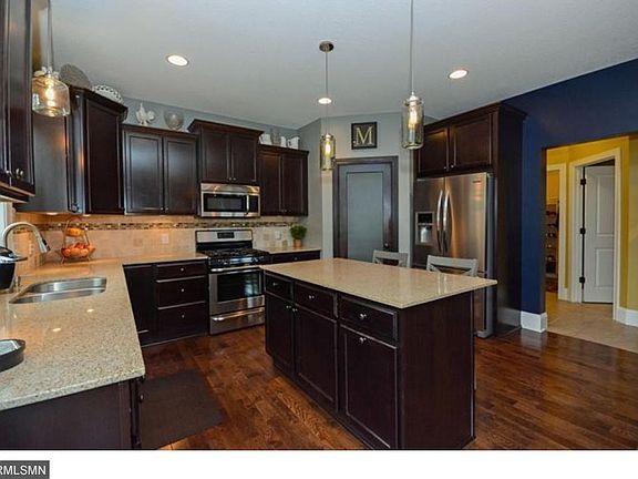 Exceptional Newer 2-story in high demand area on a cul-de-sac! Features include Granite Counters, SS Appl, Expresso HW Floors & Cabinetry, Tile Back-Splash, Large Picture Windows, 24X14 Maintenance Free Deck with upgraded footings for future 4-season overlooking a private backyard, Front Porch, Workout Room, Main Floor Office, State of the Art Media Room, Lots of Storage and more room available to finish in the lower level. Close to 35W, Airport, Nine Mile Creek, Moir Park and lots of trails.