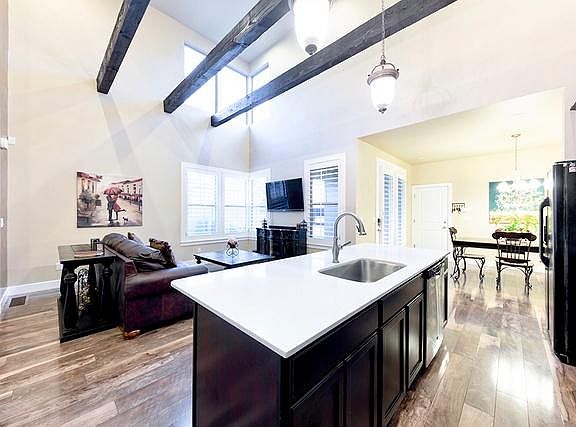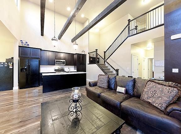 Be prepared to be wowed by this stunning row-end townhome in pristine condition with upgrades galore! Walking in you will find an incredibly open floor plan with soaring ceilings, gorgeous wood beams, and plentiful space for enjoying and entertaining your family and friends! It has an incredibly spacious main floor master suite! It boasts its own master bathroom with a beautifully upgraded large walk in shower, quartz countertops, double sinks, a walk in closet, and even its own laundry closet! The beautiful kitchen boasts ample cabinet and countertop space with an extra long bar and quartz countertops. All while being open to the great room and dining room, creating in our eyes, a slice of paradise! Loads of windows for delightful natural light and gorgeous shutters to complete them. Upstairs you will find 2 spacious and bright bedrooms, a full bathroom, an additional laundry closet. Did we mention the basement already being partially finished? Insulation, electrical and framing is complete! Set up for a living room, full bathroom, and a bedroom with a walk in closet. Also a new tankless water heater was just installed! Only about 1 block from the park, 2 blocks from the lake, and 1.5 miles from Soda Row! Call for your personal showing today! Square footage figures are provided as a courtesy estimate only and were obtained from appraisal. Buyer is advised to obtain an independent measurement. Buyer and Buyer's Agent to verify all information, which has been provided as a courtesy only.