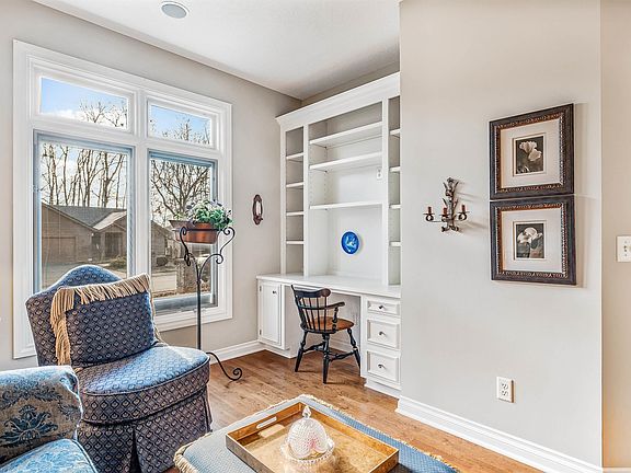 Custom-built by Marlin Yoder, this pristine villa offers an effortless living experience in the coveted Hamlets West community in Southwest Allen County. Featuring 2 bedrooms, 2.5 bathrooms, and a 2-car garage with bump outs, this 2100+ sq. ft. home is designed for both comfort and style with upgrades throughout. Nestled on a private, wooded lot, this residence presents tall ceilings, lovely crown molding, and an open, airy layout flooded with natural light, perfect for easy living and entertaining. The main level boasts an all-seasons sunroom, a large but cozy office/study, laundry room, and a primary en-suite as a haven of relaxation w/a huge walk-in closet, jetted tub with tile surround, tiled shower, and dual vanity. A bonus feature provides double door access from the primary bedroom to the sunroom. The eat-in kitchen is a dream, featuring a two-level eat-at bar, gas cooktop, hood, microwave, and convenient trash compactor. Open to the dining area and family room with a gorgeous brick fireplace, this space offers seamless flow for gatherings. The finished daylight lower level complete with a wet bar, ice-maker, storage areas, brand new HVAC, and half bath is perfect for entertaining guests or relaxing with loved ones. A few steps upstairs you'll find a full guest retreat with the additional bedroom w/built-in desk, tons of natural light, three storage closets, and a full bath. Step outside to the concrete patio through the all-seasons sunroom and enjoy the serene backyard oasis surrounded by lush foliage. In the summer, experience calmness and privacy in this tranquil setting. Situated in a quiet cul-de-sac and steps away from the tennis court and pool, this home offers an unparalleled lifestyle of leisure and recreation.