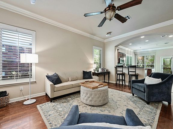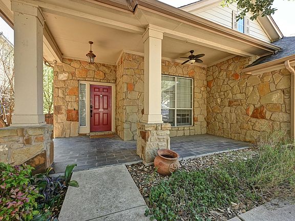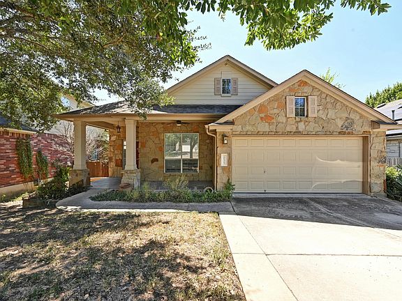 Wonderful curb appeal on this single-story, stone front home with inviting front porch in Parkside at Slaugther Creek. Backing to ~44 acres of greenspace, this home is private and offers direct access to the miles of hiking trails in the neighborhood along Onion Creek. You will love relaxing and spending time on the expansive rear patio that provides you with a serene treetop feel. Fall is the perfect season to enjoy your personal perch overlooking the deer that frequently visit and the lush nature view out the back. Tall ceilings and hardwood floors greet you as you walk into the spacious home with planation shutters and crown molding for an elevated feel. The kitchen is a dream with granite countertops, center island, stainless steel appliances and it is open to the family room and dining room so entertaining is a breeze here. The kitchen has extra counter and cabinet space plus a large breakfast area so you can also enjoy family dinner or game nights. The primary suite is nice and private with a bay window overlooking the backyard and it features dual vanities, separate shower & tub as well as a large, walk-in closet. The secondary bedrooms are good-sized, have hardwood floors and are outfitted with Californa Closet storage for extra efficiency. There is an additional living room that could be used as an office/study, sitting room or formal dininng, whatever suits your needs. With tile in the wet areas, there is no carpet in this house at all! Amazing location near SouthPark Meadows where you can meet all of your shopping needs, hop over to the recently opened H-E-B or meet some friends at one of the nearby breweries. If fine dining or nightlife is your thing, downtown is only 11 miles away. Great proximity to the airport, major employers and all things Austin.