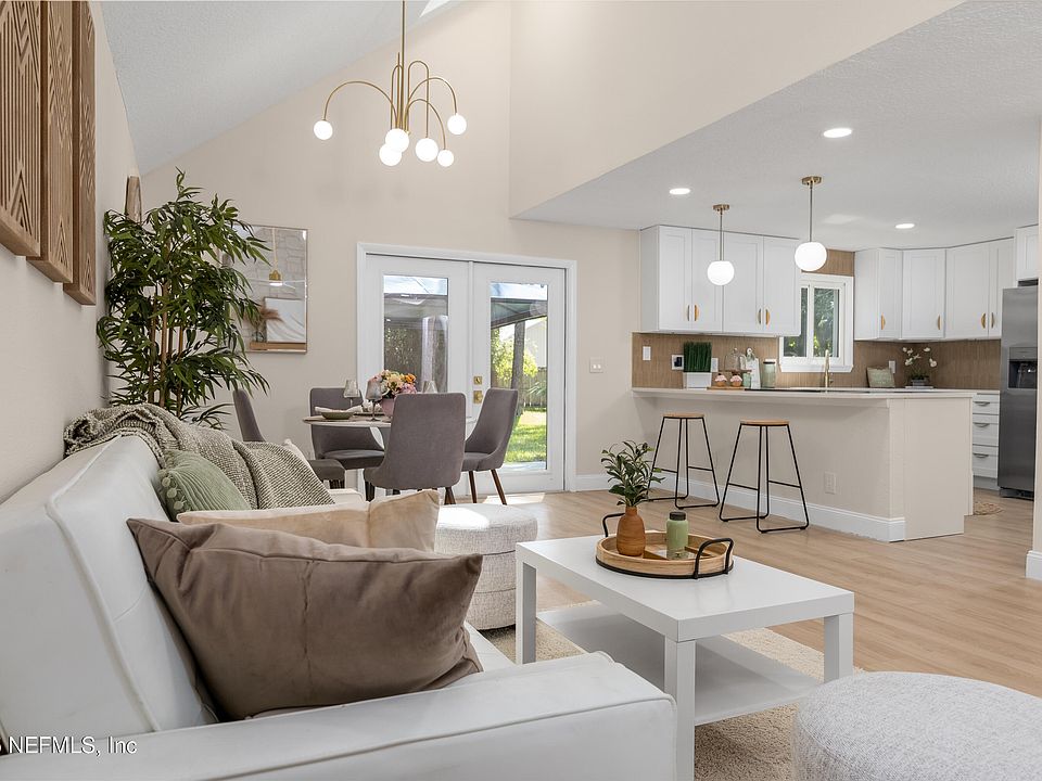 Step into this trendy renovated modern home with contemporary upgrades in Mandarin. Located in a quiet neighborhood feauturing oversized fully fenced backyard. This residence offers luxurious finishes and thoughtful design throughout. Kitchen featuring quartz countertops, custom cabinetry, and brand new stainless steel appliances. Spacious master suite, with bonus flex space that could be used for an office, library, or nursery, designer tile and electric fixtures, brand new Lvp flooring, electric firfeplace, water heater, Hvac and many other upgrades.
