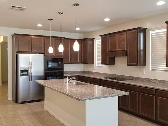 Single story home with 2 car garage in Eastmark community * 3 Bedrooms + small living room can be used for game room or office. * Multisliding door panel in great room to the backyard patio. * 2 1/2 bath with separate bath and shower, dual vanity in master bath. * Tiles through out the house with carpet in bedrooms. * 2 inch window blinds on all windows. * Gourmet kitchen with hardwood kitchen cabinets and granite countertop include all appliances. * Covered front and back patio * Two tone paint through out the house. Small dog may be allowed upon approval. Additional pet fee and/or pet deposit may be required. A non-refundable cleaning fee of $400 is collected at move-in. The master planned Eastmark community has many amenities to offer including community pool, game room, biking/hiking, and 20+ parks/ playgrounds. There are also many organized activities for adults and kids. 12 months lease