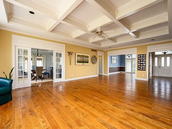 Showings to begin Friday 4/21/23. Desirable Homestead rare ranch on a finished lower level! Custom built by Colonial Homes. Enter through the custom front door to the hardwood floor foyer. Hardwood in foyer, dining, great room, and primary suite. Gorgeous floor to ceiling windows allows for natural light from all angles. Custom woodwork package includes coffered ceiling in 3 rooms, built-ins and two masonry fireplaces. Charming 3 season room overlooking the pergola. Two main floor bedrooms with an additional 2 in the daylight lower level. The basement is perfect for entertaining with wet bar/refrigerator/dishwasher PLUS stairs to garage and storage/workshop area. Updated kitchen features an oversized breakfast room, stainless appliances (not warranted) and Quartz counters. Central vac system (no accessories). Washer and dryer included. Large additional workspace in the garage! Neighborhood pool and walking trails!