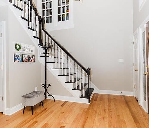 Welcome to 10525 Glenmary Farm Drive. This beautiful home boasts 4 bedrooms and 4 bathrooms. This home has a first floor primary bedroom with two separate walk in closets and oversized primary bath that features a jetted tub. The main floor has new gorgeous hardwood floors, new lighting and paint. other features include, first floor laundry, wood burning fireplace, separate formal dining room, powder room, and gorgeous roll out windows.The upstairs 3 bedrooms + bonus room have brand new carpet with a 20 year transferable warranty. Each room is unique but all offer amazing window views of the property. The second floor has a full bathroom with dual sink vanity.