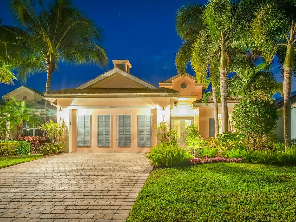 Amazing golf & lake views from this wide-open, luxurious, meticulously kept 3BR/2BA home located in the exclusive & private community of The Club at Ibis. From the moment you walk in the front door, your eyes are drawn to the gorgeous, screened-in pool and the natural views surrounding it. You feel as if the outside is coming into this beautiful home! The contemporary great room has upgraded flooring, volume ceilings, and crown molding, while the gourmet kitchen features granite countertops, stainless steel appliances, and wood cabinetry. The expansive pool & patio has a covered seating area, paver flooring, and a built-in BBQ with a refrigerator. The tranquil and pastoral feel of this home, coupled with all of its other desirable features, makes it feel as though you have discovered a