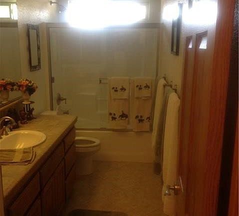 4 Bed/3 Bath home with split floor plan and huge, wide open Kitchen and Living Area, 2 Master suites (one at eachend of this large home). Kitchen has beautiful granite counters with recessed sink, stainless steel appliances, 5-burner gas top stove & double wall oven. Formal Dining Room and separate Breakfast Area. 1st Master Bath has jetted tub and custom tiled walk-in shower, and an extra large walk-in closet. Every closet in the home has cedar panelling. Can't forget the huge attached 4 car garage The 2.1 acre horse property includes a solidly constructed horse barn with 4 stables with an attached corral, a 1200 square foot building with a 2nd story loft on concrete floundation with skylights is perfect for a shop or a home-based business, dog pens, and so much more. The beautifully landscaped yard is drought-conscious and the back yard is perfect for large gatherings, or just to sit and relax on your own. The back yard has easy access for even the largest vehicles.