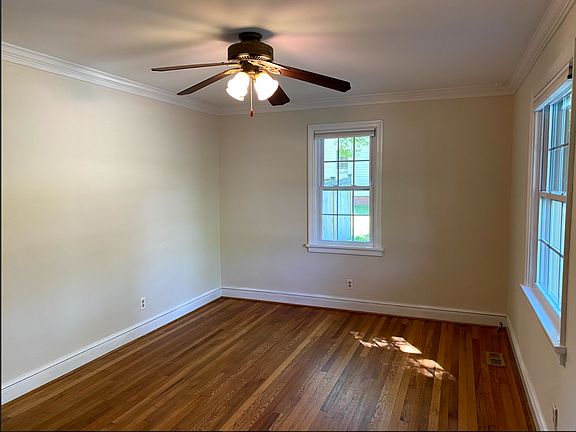 This beautiful cape is one of a kind! This well maintained home features 3 bedrooms, 1 1/2 bathrooms, living room, dining room, kitchen, and a laundry room. First floor primary bedroom has a full bathroom and walk in closet with plenty of storage. Galley kitchen has a host of cabinet and counter space as well as updated appliances. Off the kitchen is a laundry room with a newer washer and dryer. Dining room has a modern overhead light, chair molding, and a storage area. Spacious living room contains a ceiling fan with light. The upstairs has two large, carpeted bedrooms with a multitude of character. This property is centrally located in Chesterfield County on over an acre of of land! The backyard is completely fenced in with a 6 foot privacy fence. There is a detached 2-car garage, providing plenty of storage. Yard offers a swing set, fenced in garden with raised beds, a fire pit, and a multitude of mature plant material. Home is available to move in Now! No smoking. Dogs are allowed with the applicable fees. Cats are not permitted.