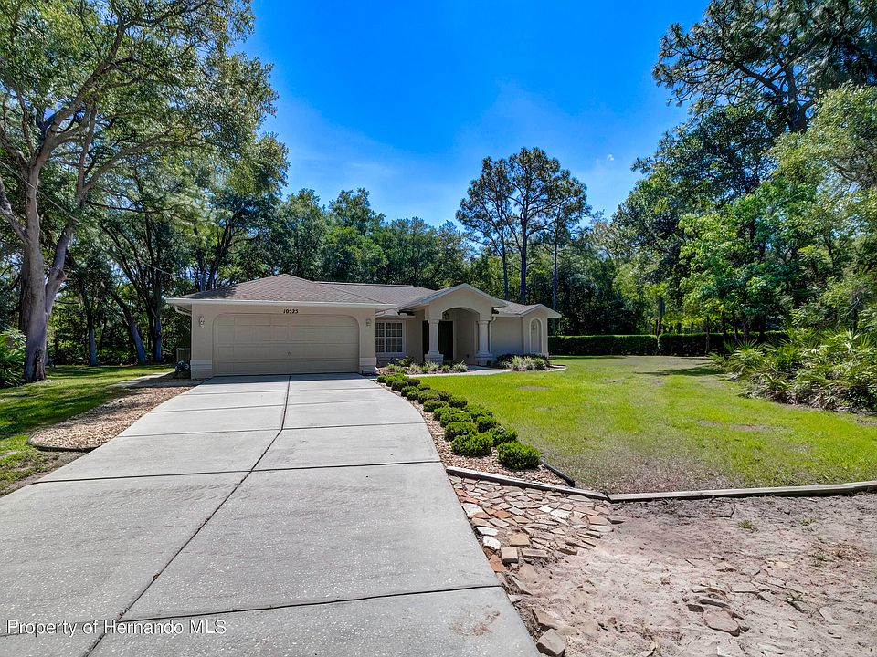 Custom Built Quality! Put this Artistic built beauty on your short list of must-see homes! From the moment you enter you will feel like you are at home! Featuring a split bedroom plan, this 3-bedroom, 2 bath home offers privacy for guests. The primary suite with ensuite offers access to the huge lanai with Hot tub! Plenty of room in this kitchen, perfect for cooking and conversing, as it opens to the family and breakfast nook and flows seamlessly to the dining and living room. The vaulted ceilings, strategically placed windows and slider doors surround the huge, screened lanai for easy access and view of the beautiful land all while providing a lot of natural light! And if you are looking for outdoor space, this is it! With approx. 1.27 Acres the front and back yards provide ample space for gardening, a pool and parking your RV or boat. House is set back off the road with a long winding driveway, provides additional privacy. As if this was not enough, this home also has recent updates including 2022 A/C; 2022 Well Pump, 2023 Rescreened Lanai and stone coating, and septic drain field in 2015. Great location to the waterfront, Gulf of Mexico a short drive away.